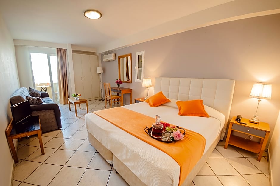 Triple Room is 194 square feet and includes either a double bed 131-150 width or 2 single beds 80-130 width plus a sofa bed plus balcony, terrace, desk, satellite tv , hairdryer, and safe.